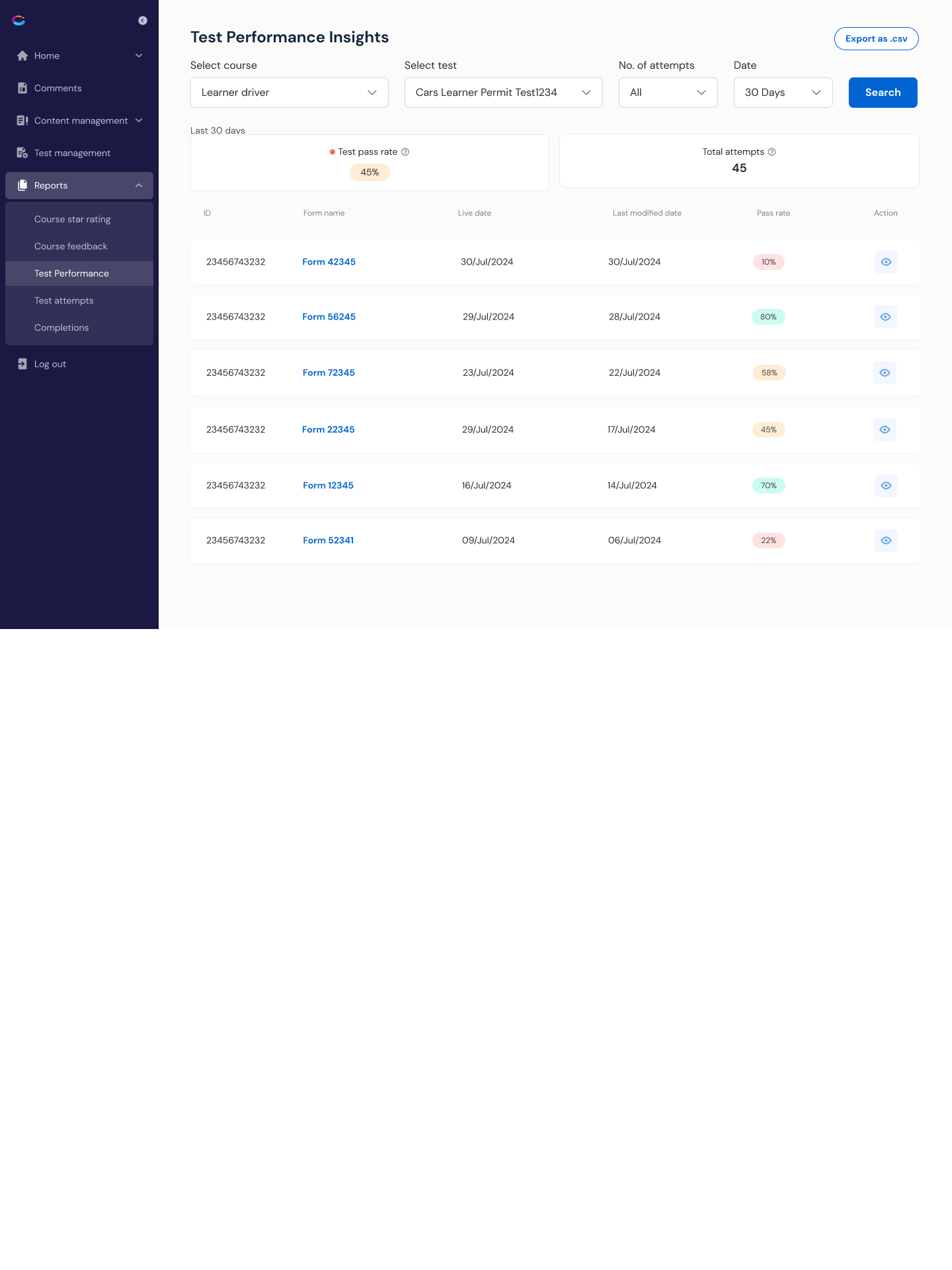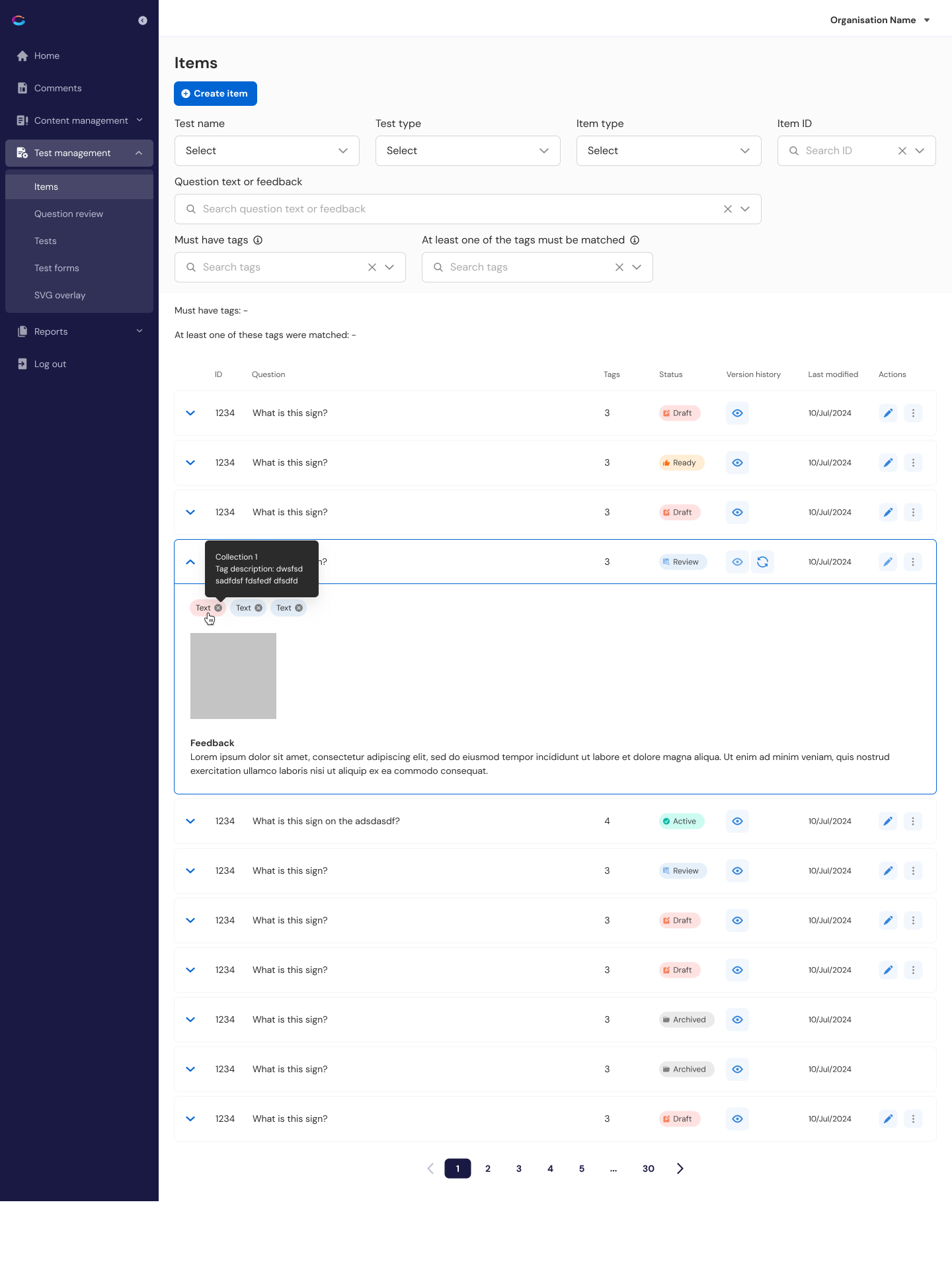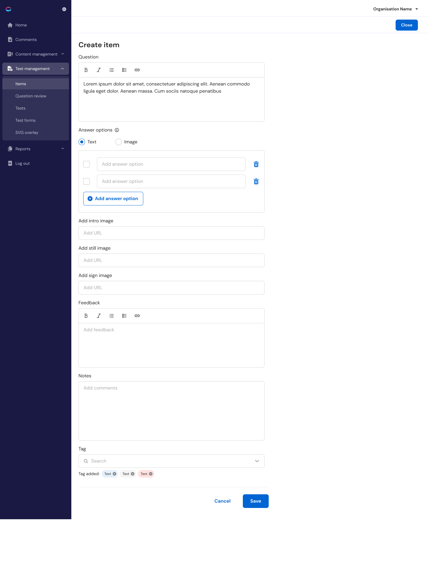 • Test management in Learning management system portal: with focus on creating items, test config to create tests with random questions, editing items, tagging, version history and reports.